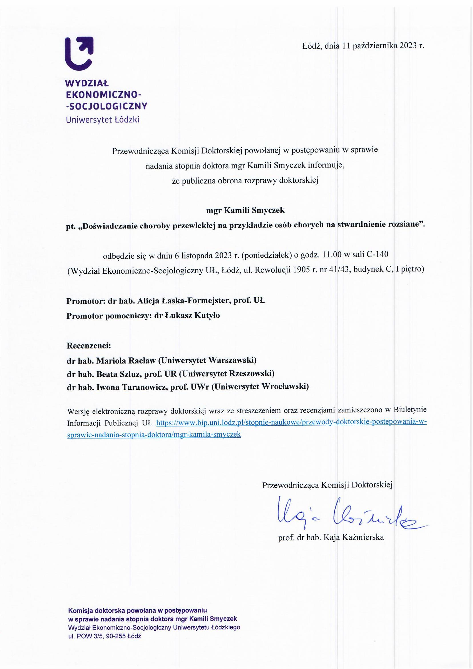 - Przewody doktorskie/postępowania w sprawie nadania stopnia doktora