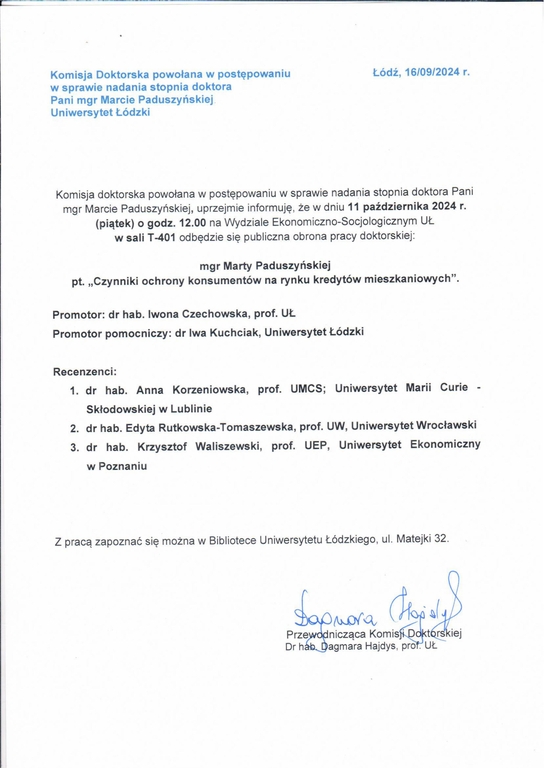 - Przewody doktorskie/postępowania w sprawie nadania stopnia doktora